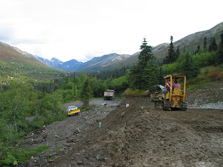 Jim brought in dirt with his dump truck to fill in our driveway better - 40+ loads - so he was smoothing it out